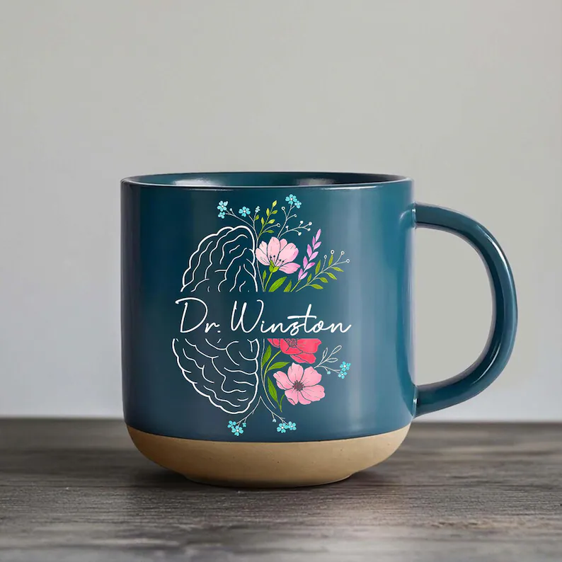 Custom Floral Brain Mug, Psychology Doctor Coffee Cup, Custom Counselor Gift, Mental Health Therapist Cup with Name, Brain Art Mug